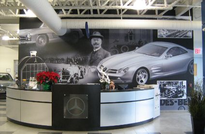 INPS works with large corporations (Mercedes Benz, Audi Canada, Rogers Communications) to provide privacy films, corporate letters and logos, wall murals, interior and exterior signage and fleet graphics. Our National Installation Team completes the installation.